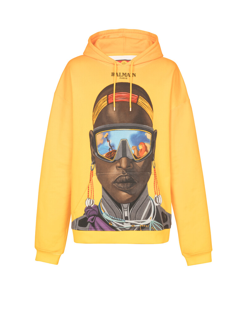 BALMAIN狮子王系列南非画家 Nika Mtwana肖像画印花帽T