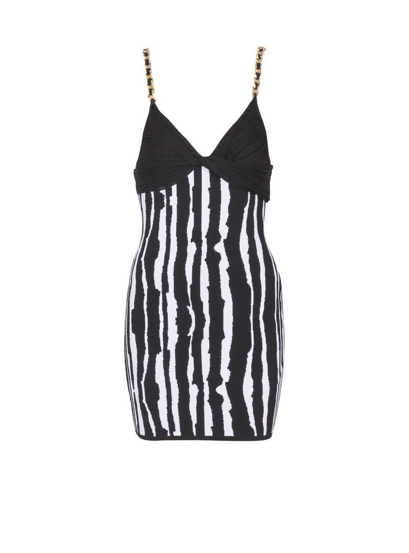Balmain狮子王系列皱褶V领斑马纹针织短洋装
