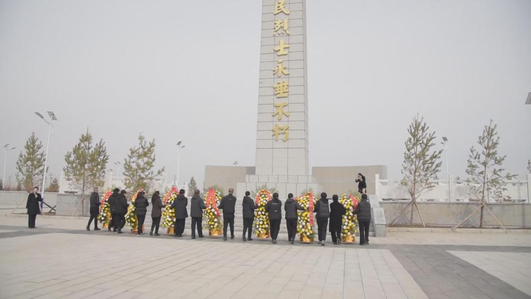 花篮敬献,缎带轻抚。在悠扬的《献花曲》声中,花篮被缓缓抬至烈士纪念碑前。全体人员向烈士敬献花篮,寄托着对先烈们的无限敬意与思念。
